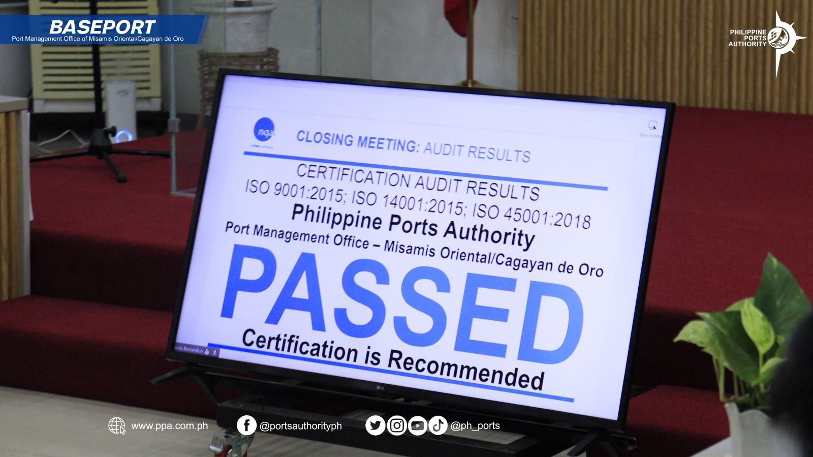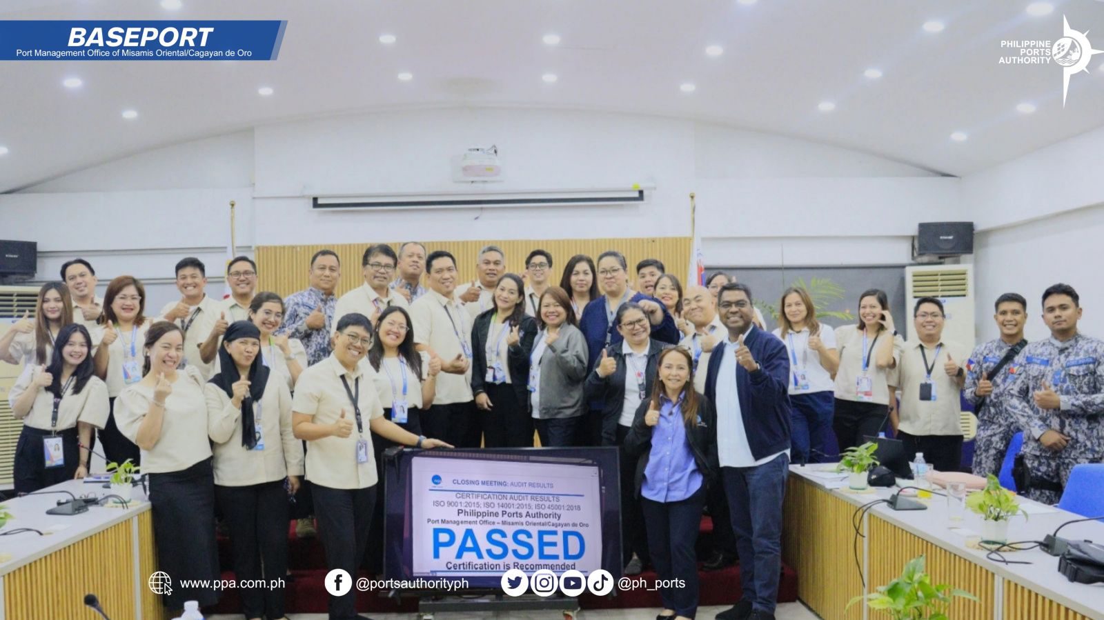Passing the Recertification Audit without any findings is a significant milestone that reinforces the credibility and integrity of PMO Misamis Oriental/Cagayan de Oro within the Philippine Ports Authority system. More importantly, it assures port users, stakeholders, and partner agencies that the office continues to deliver efficient port services while upholding environmental responsibility and safeguarding the health and safety of its workforce.
