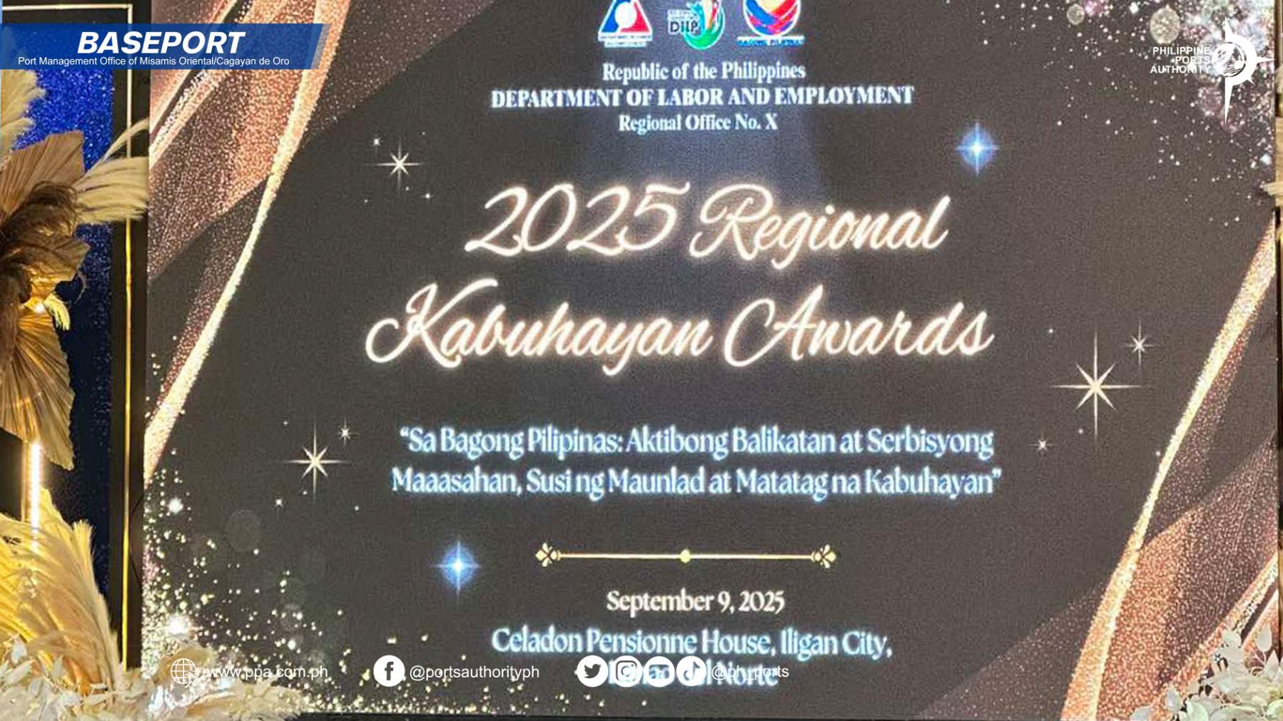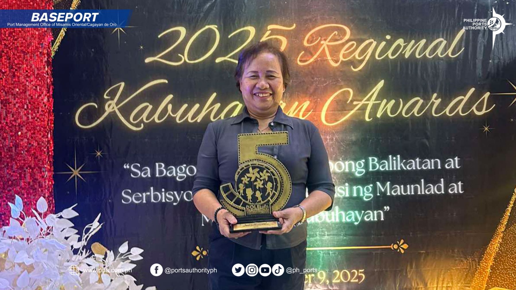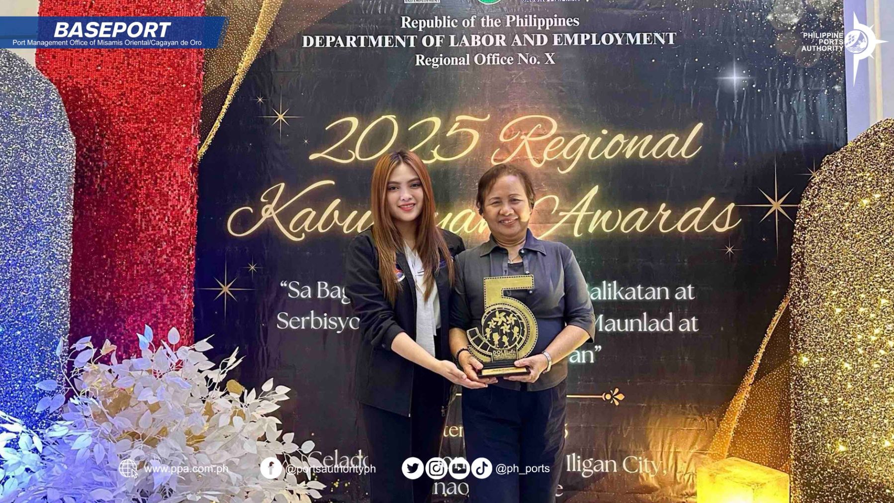 The Port Management Office of Misamis Oriental/Cagayan de Oro (PMO MOC) was once again recognized as a Bayani ng Batang Malaya Awardee during the Mga Kwento ng Batang Malaya (DOLEkula) Season 5 Awarding Ceremony held on September 9, 2025, at Celadon Pensione House, Palao, Iligan City.