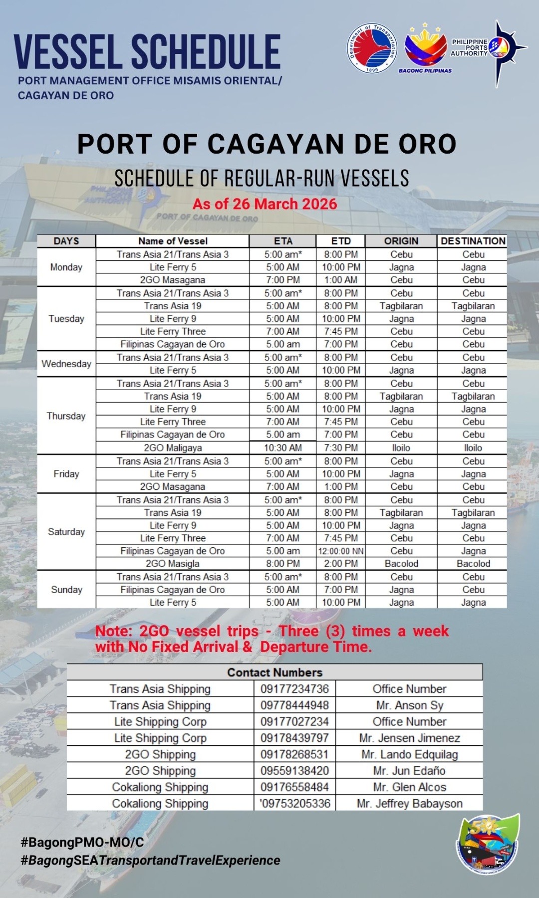 Vessel Schedule – Port of Cagayan de Oro